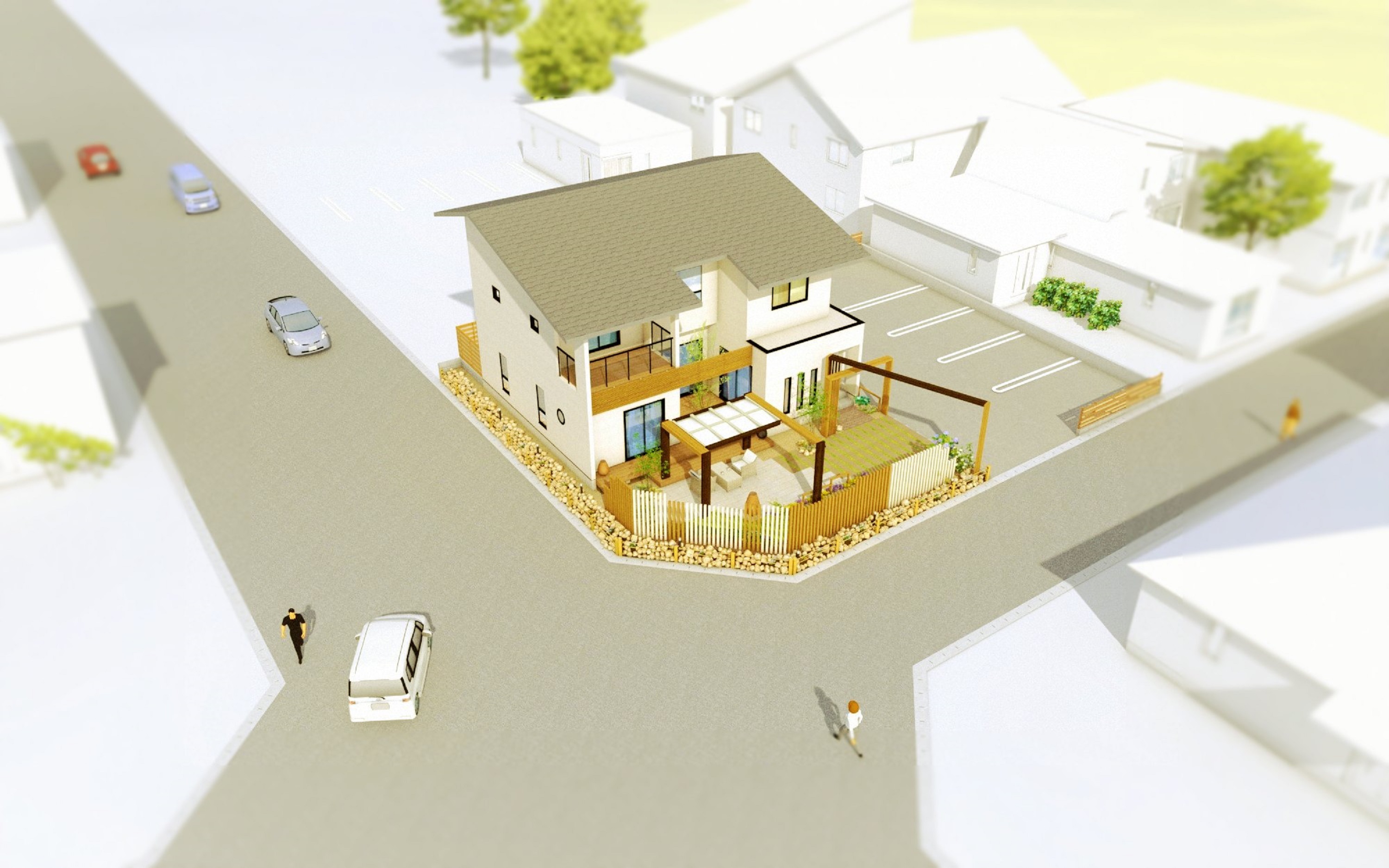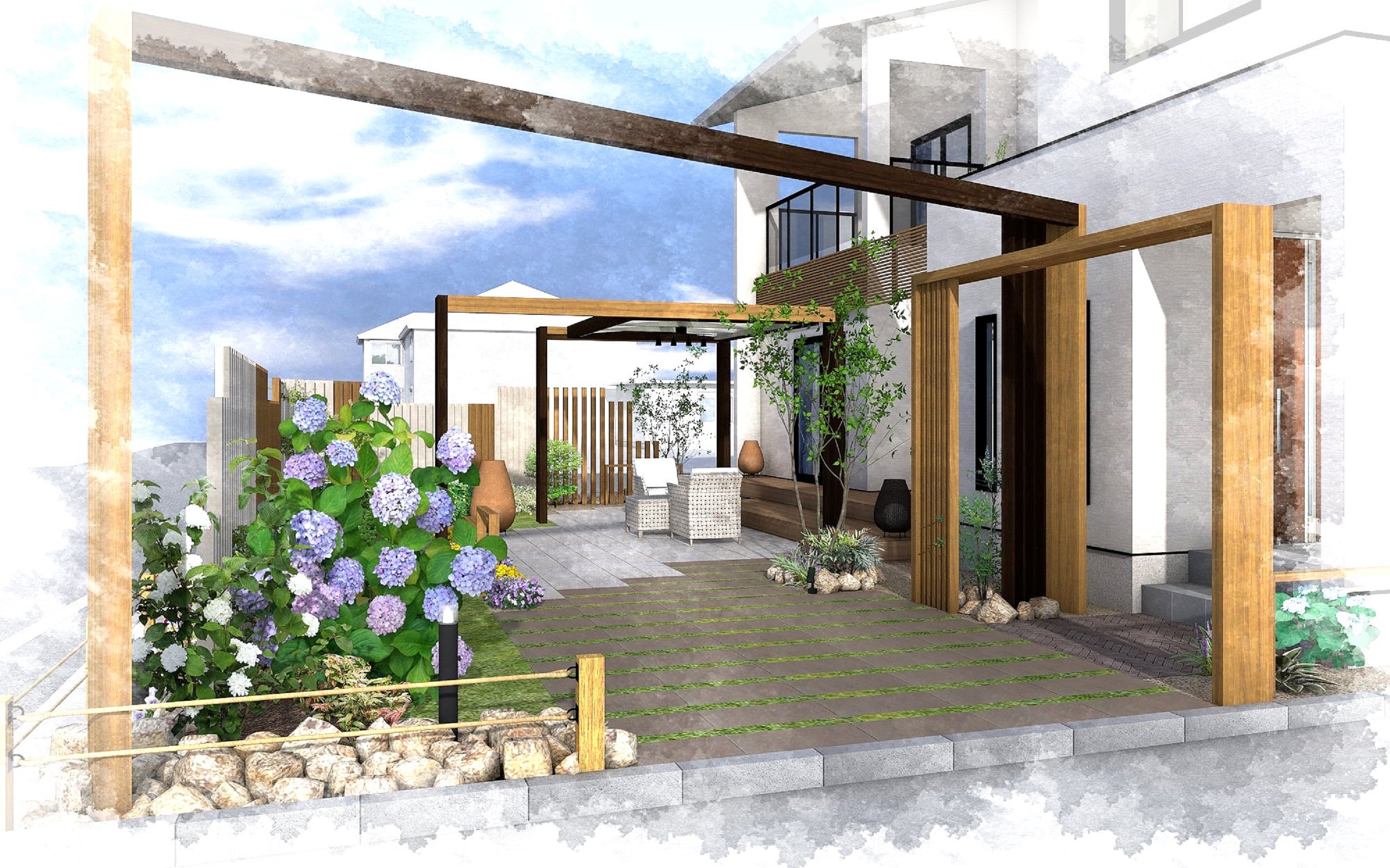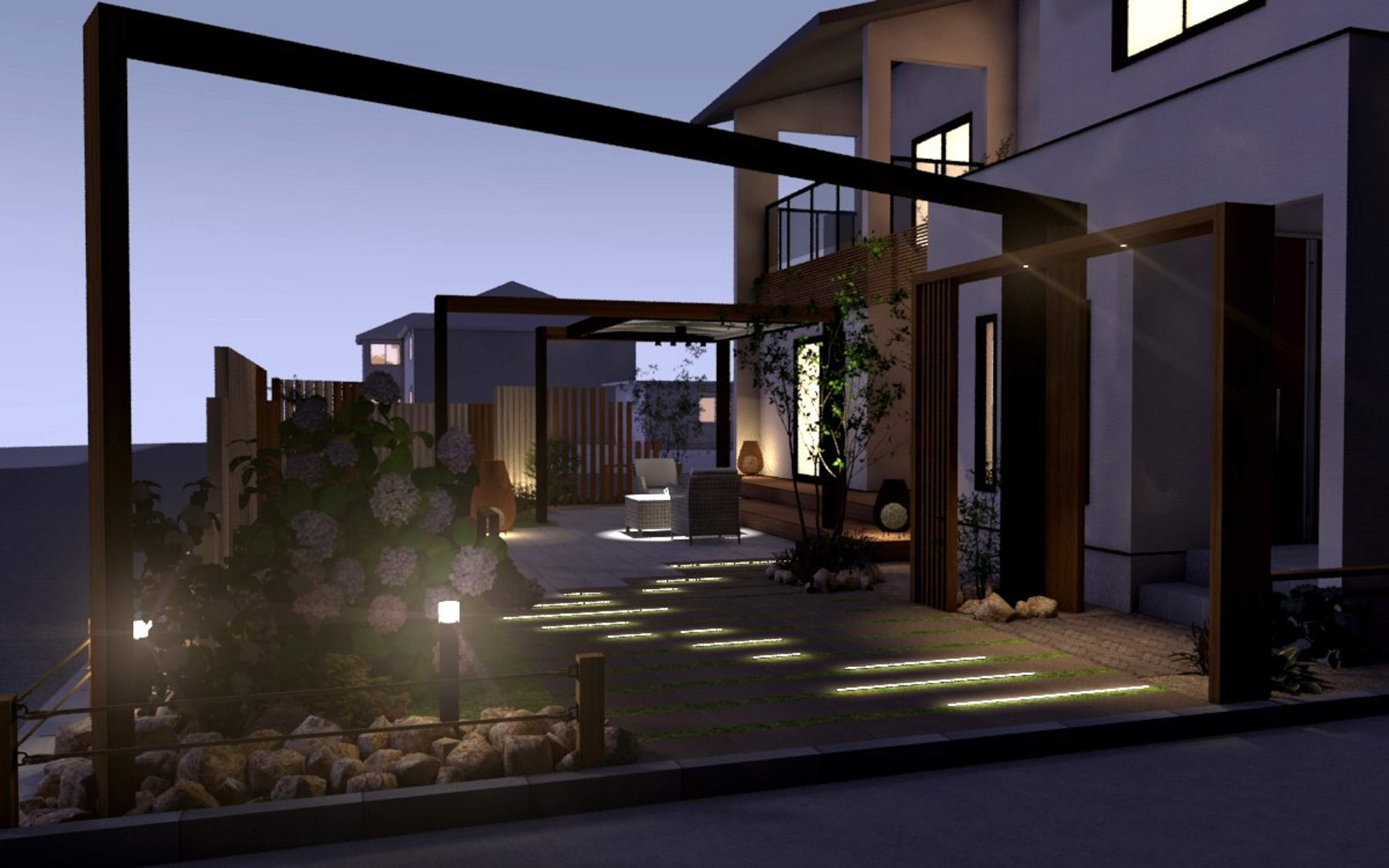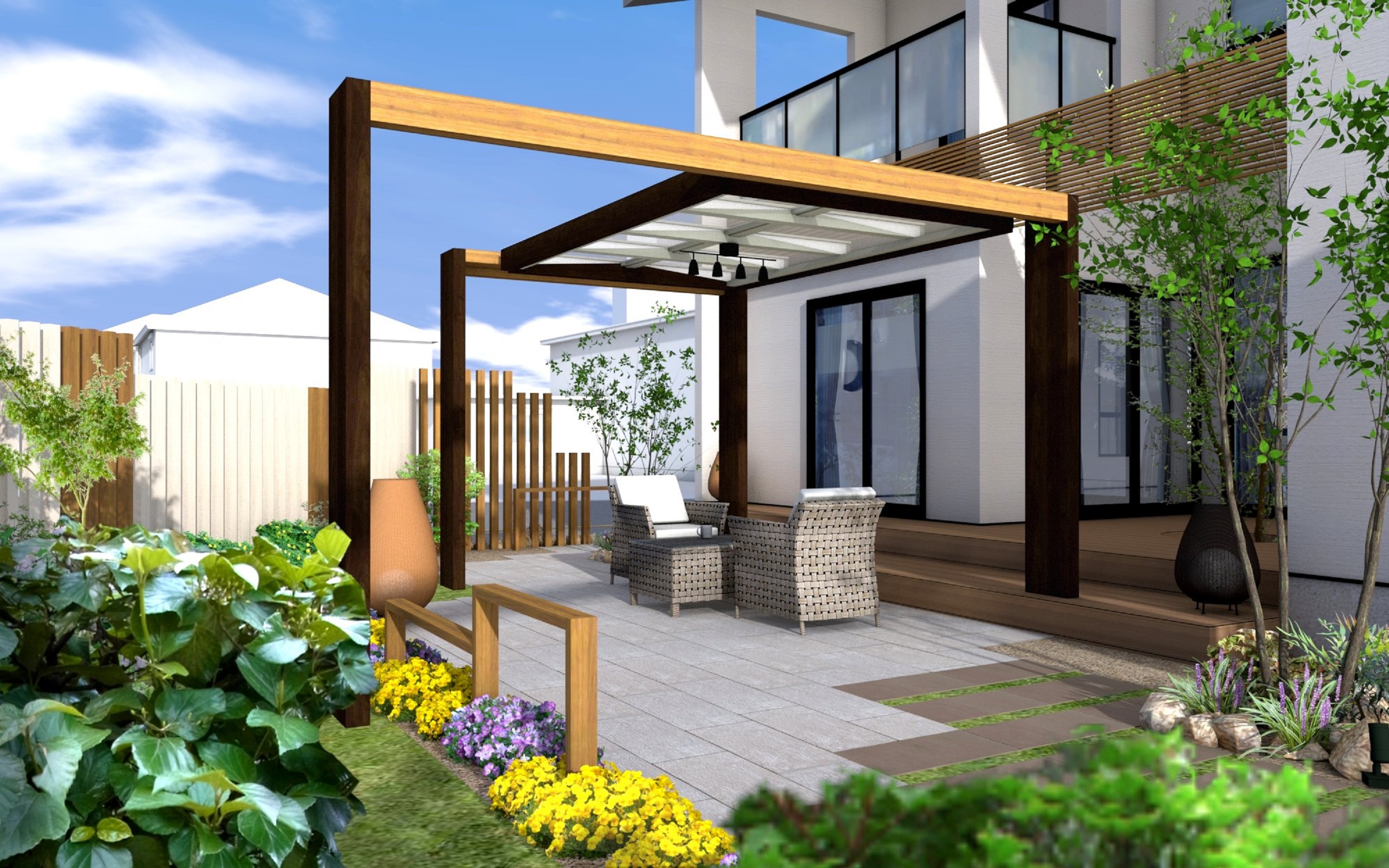お庭のプランの画像が掲載されているように、growth gardenでは設計したプランを3DCGのパース画像にすることができるソフトを使っています。