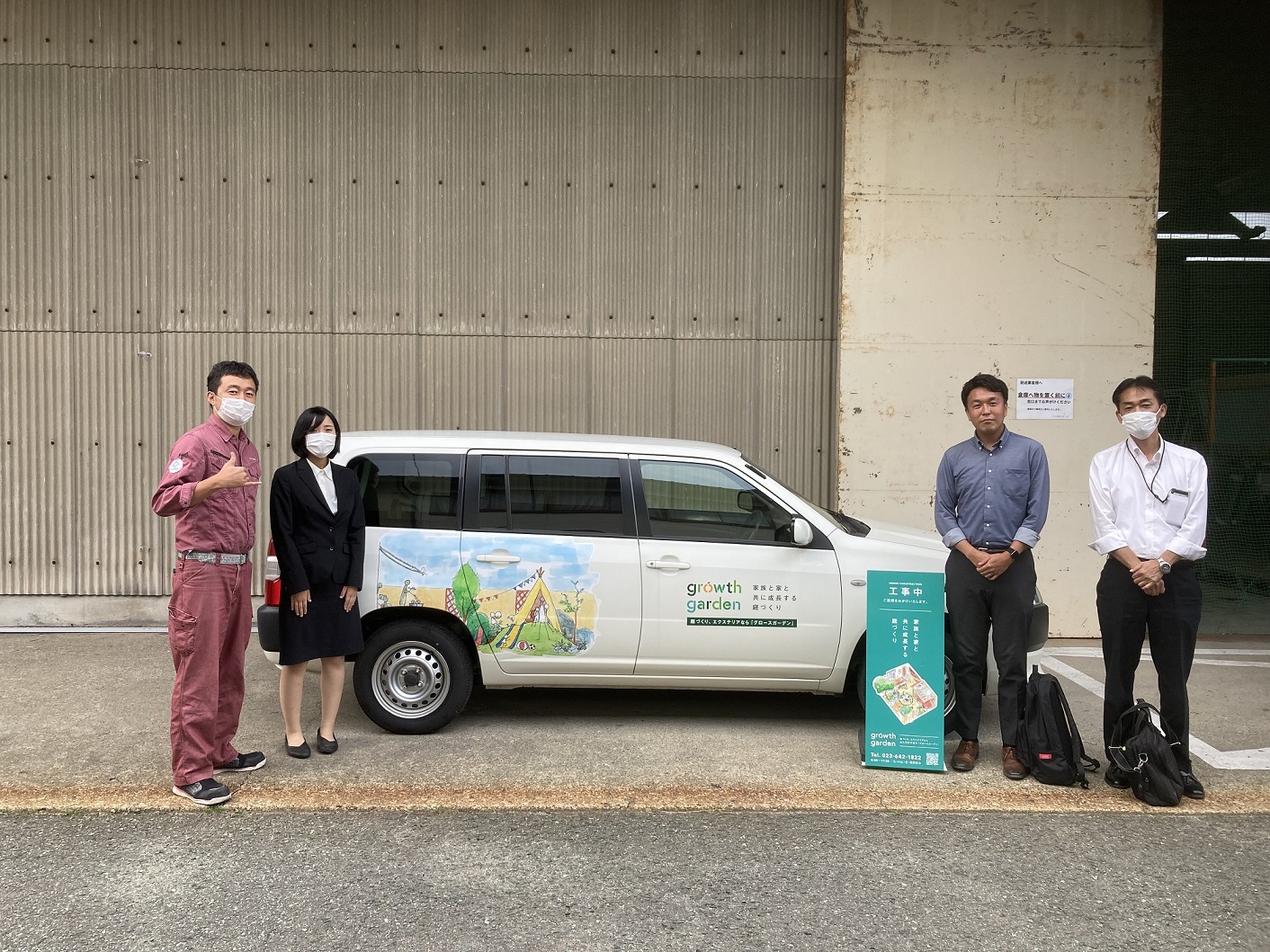 現場で使っている工事看板やカーラッピングにも興味を持ってもらえたようです。