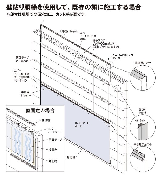 下の図のように既存のブロック塀や壁に取り付け出来るので、