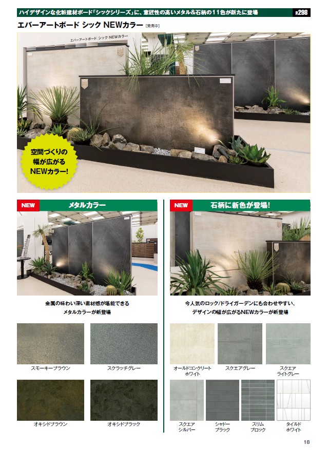 タカショーのエバーアートボードに今春新色が展開されましたのでご紹介します。