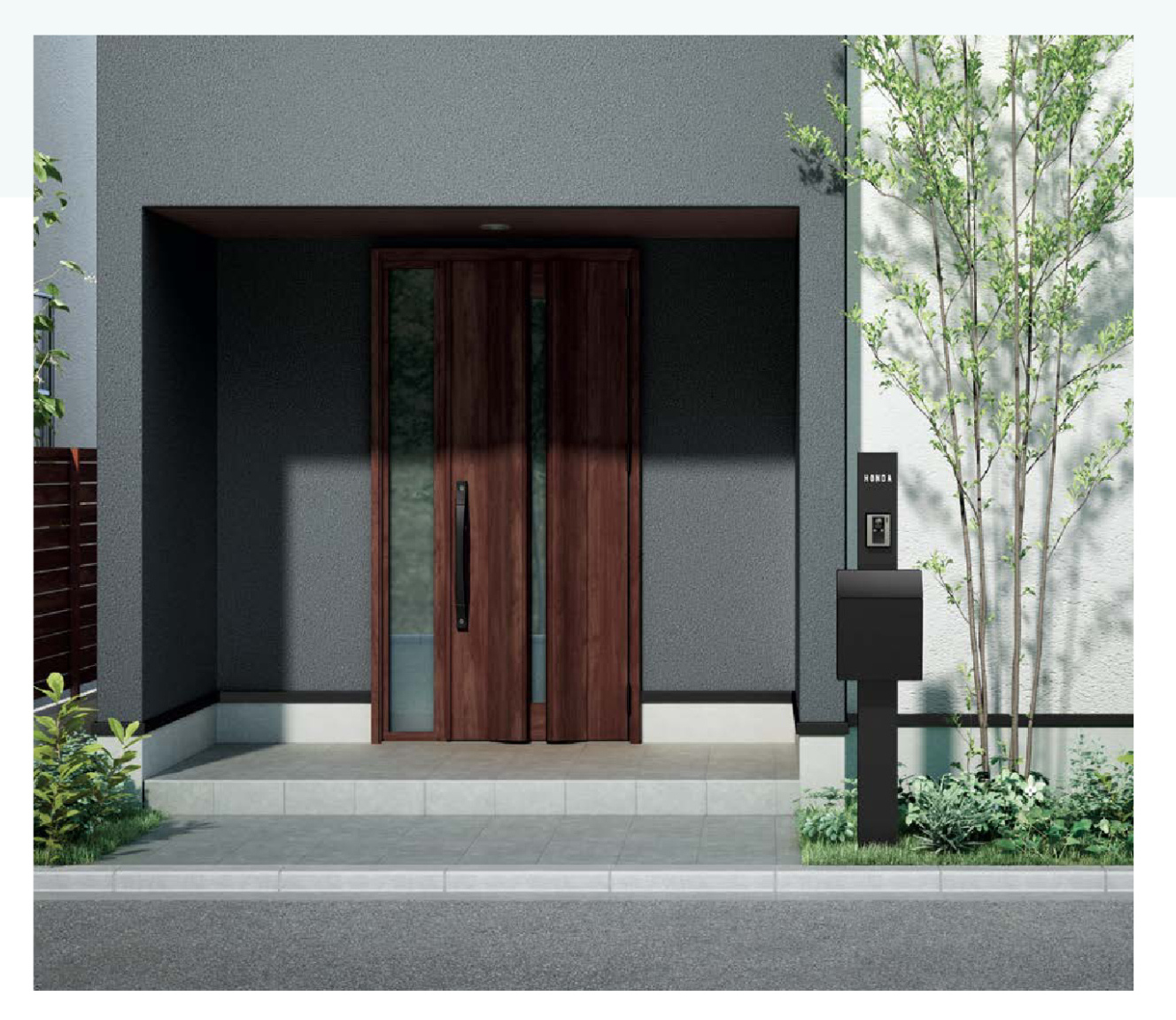 門柱で建物から離して設置することで来た人を玄関前まで踏み込ませなくて済むというメリットがあり、