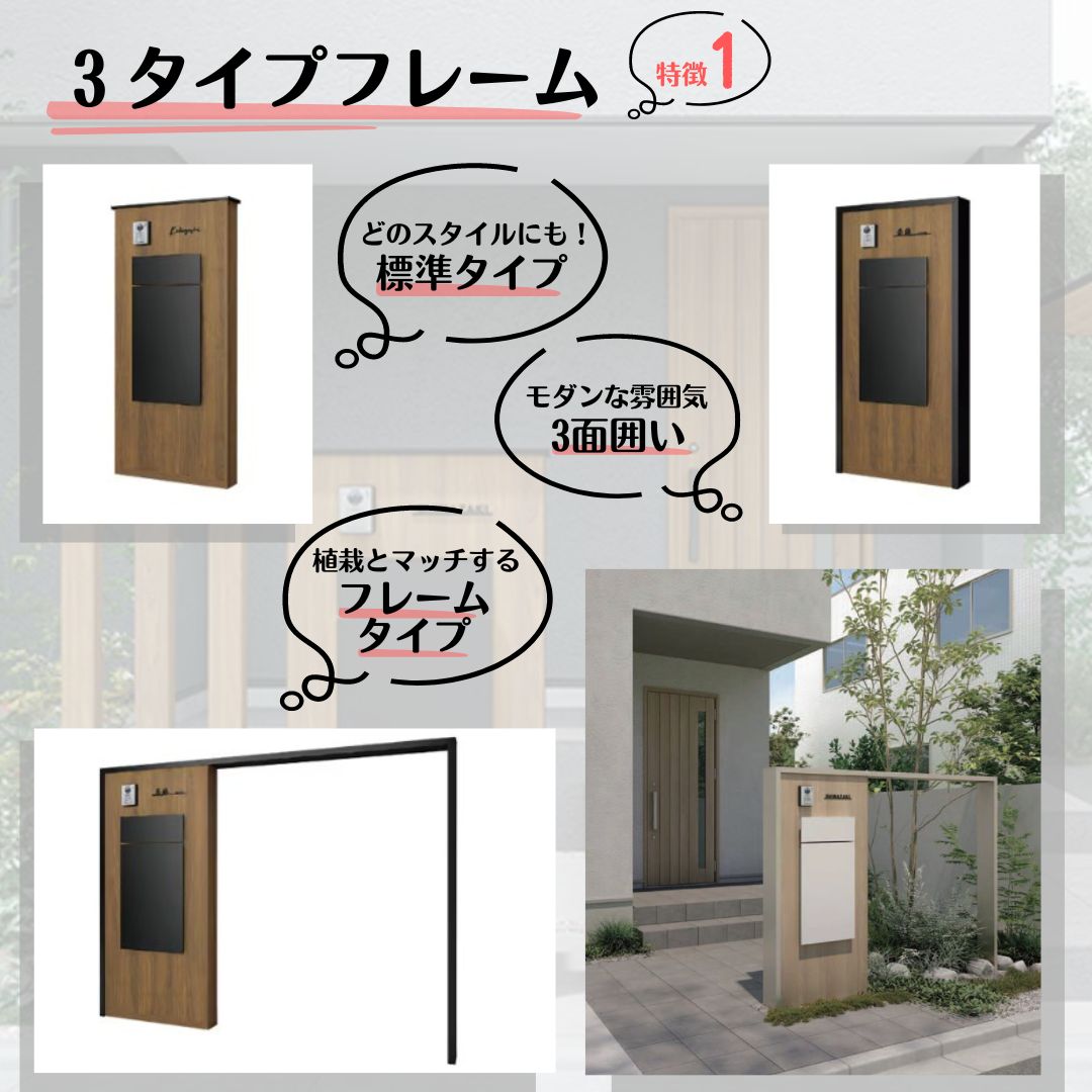 宅配ボックスも設置できるゆったりした横幅なので、玄関ドアの目隠しにもおすすめです!