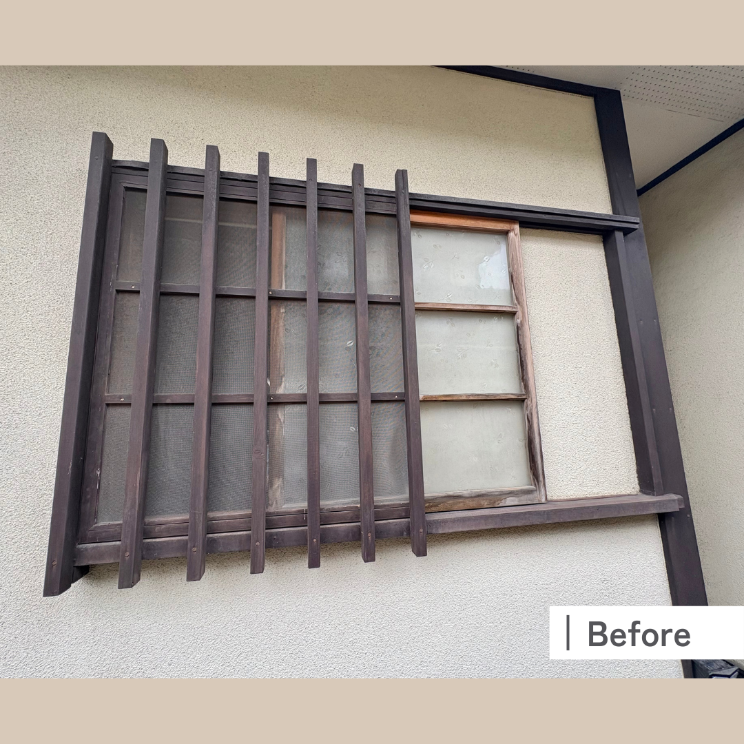 木製の格子がついた特殊なマドでしたが、このようにマドかえすることができました!