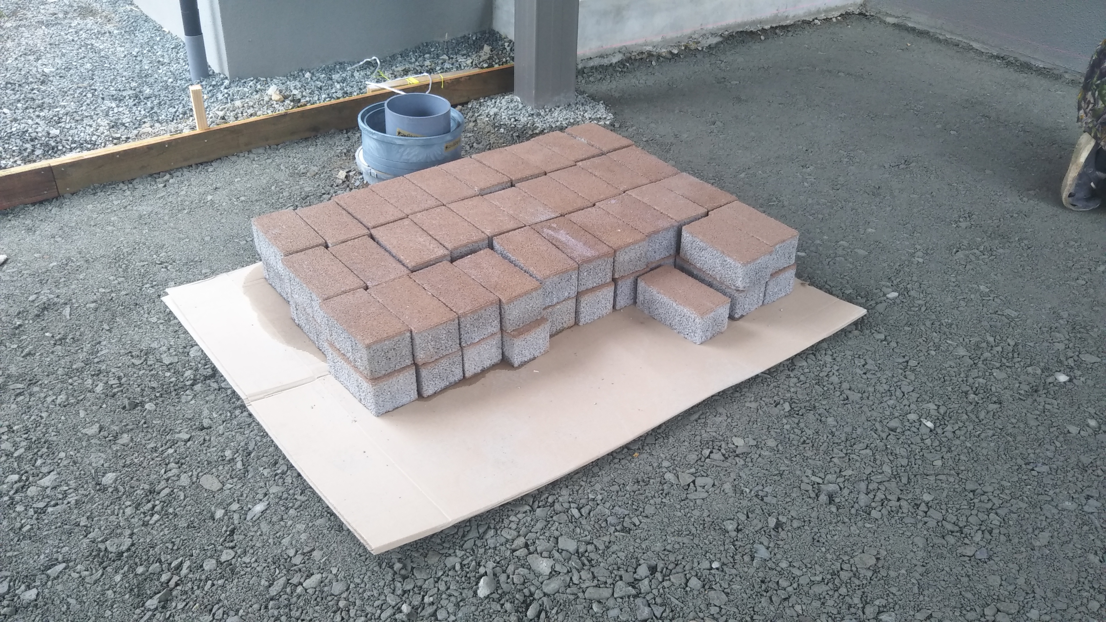 翌日には目地に使うインターロッキングブロックの設置を行いました。