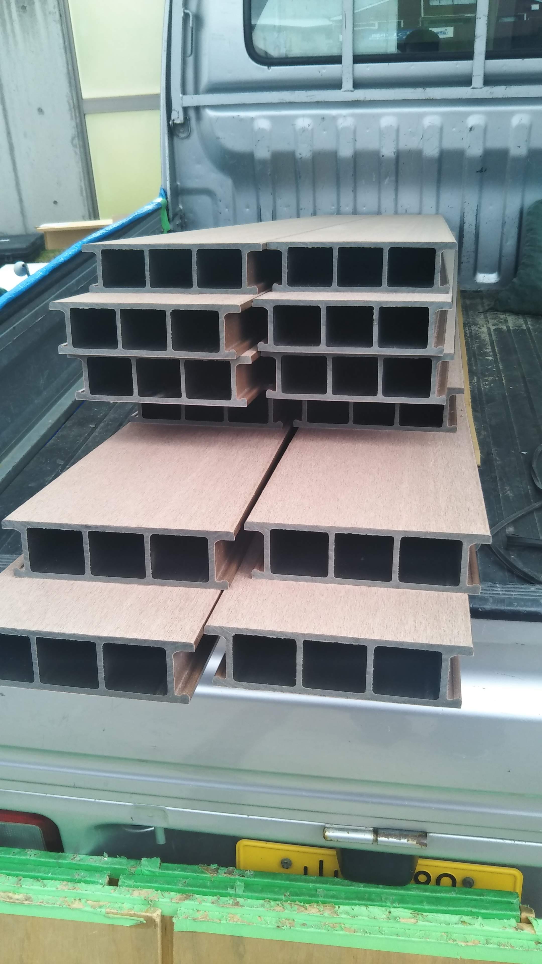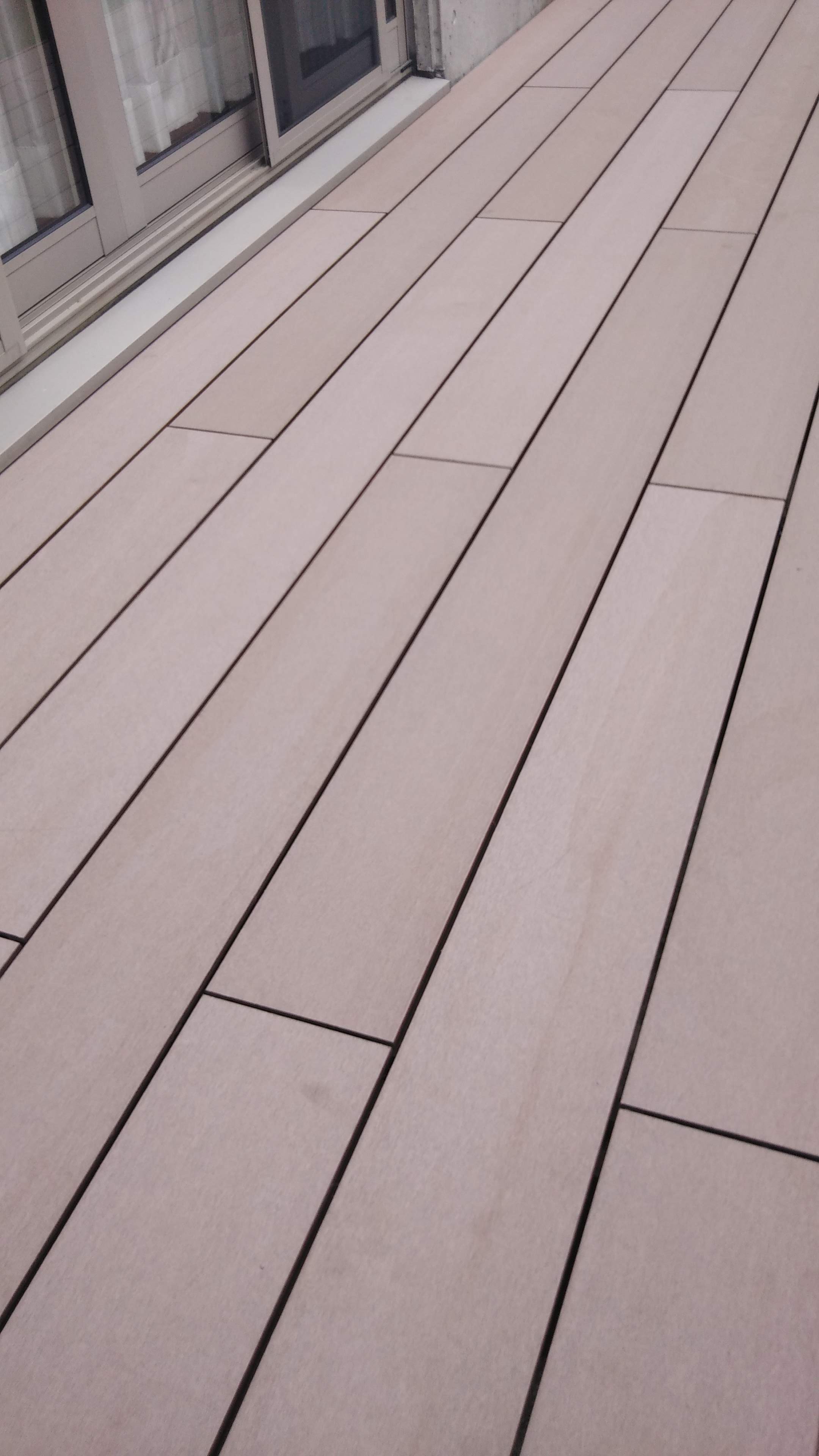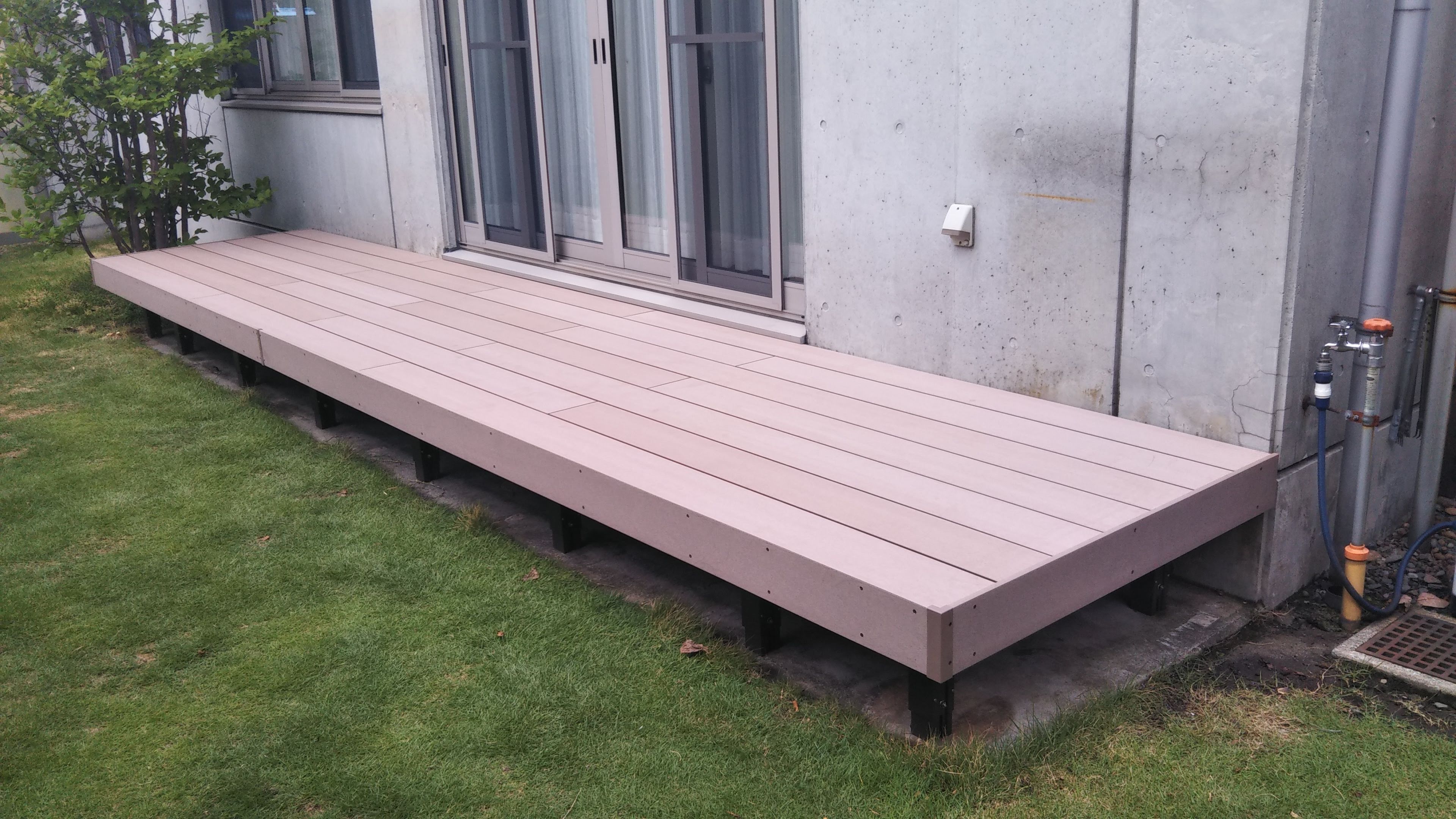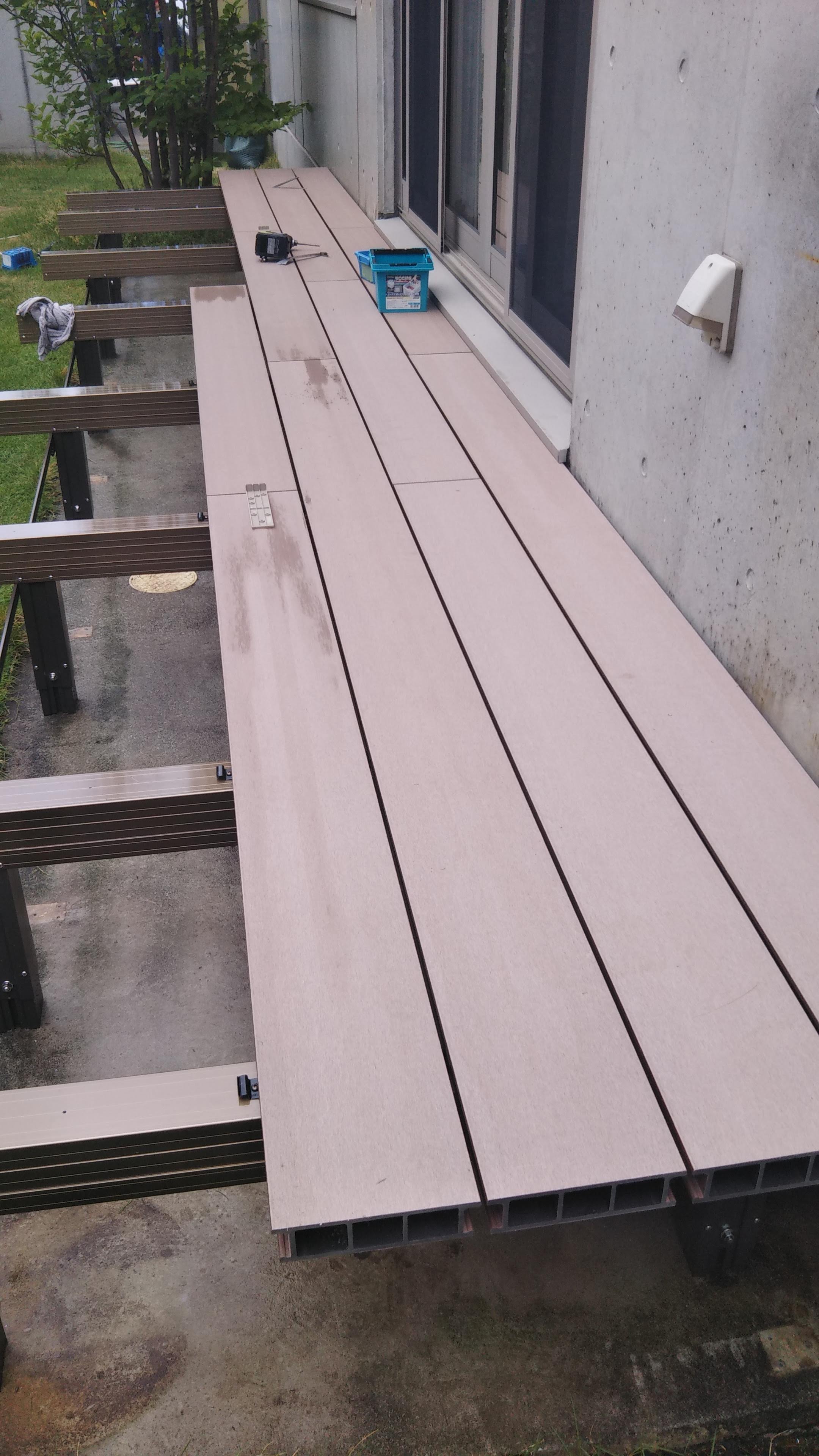 スタンダードな木樹脂製のウッドデッキを取付けます。