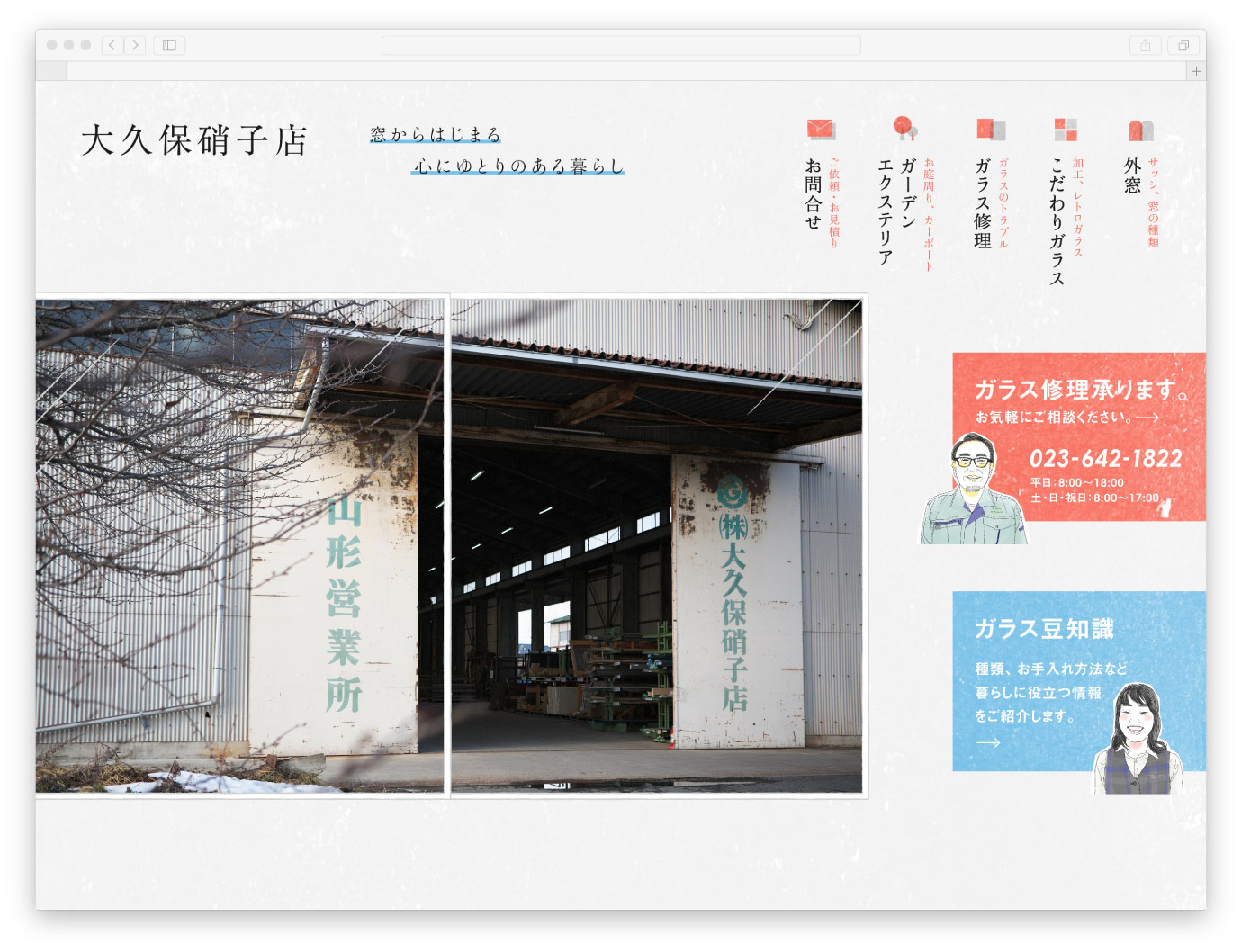 はじめまして、大久保硝子店です。この度、個人のお客様にも当店を知っていただく機会を増やすため、Webサイトを開設しました。