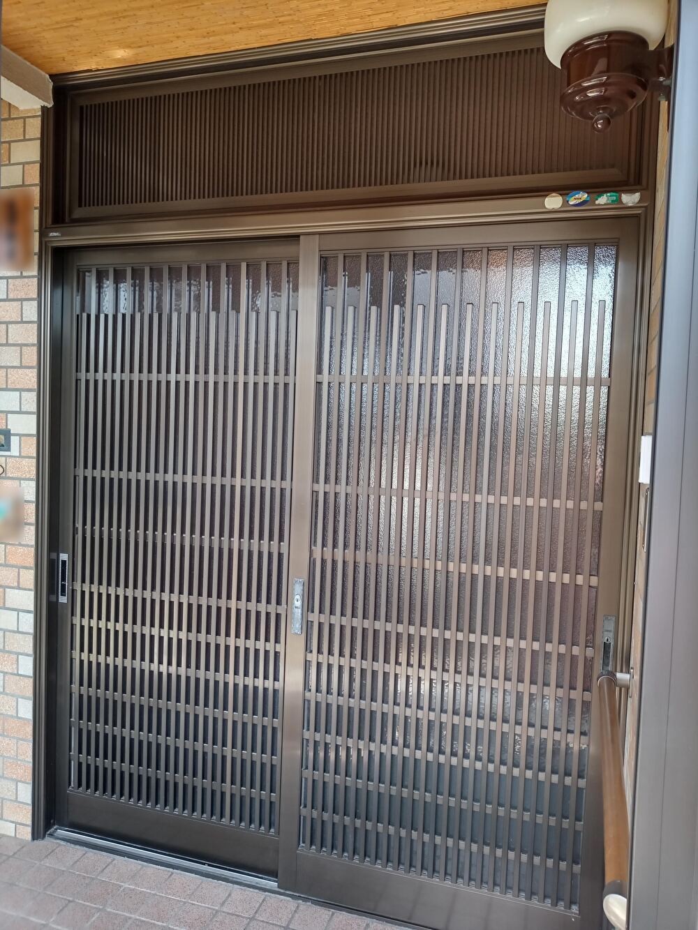 ランマ付き・格子タイプの玄関引戸を、新しい玄関引戸に変えていきます!