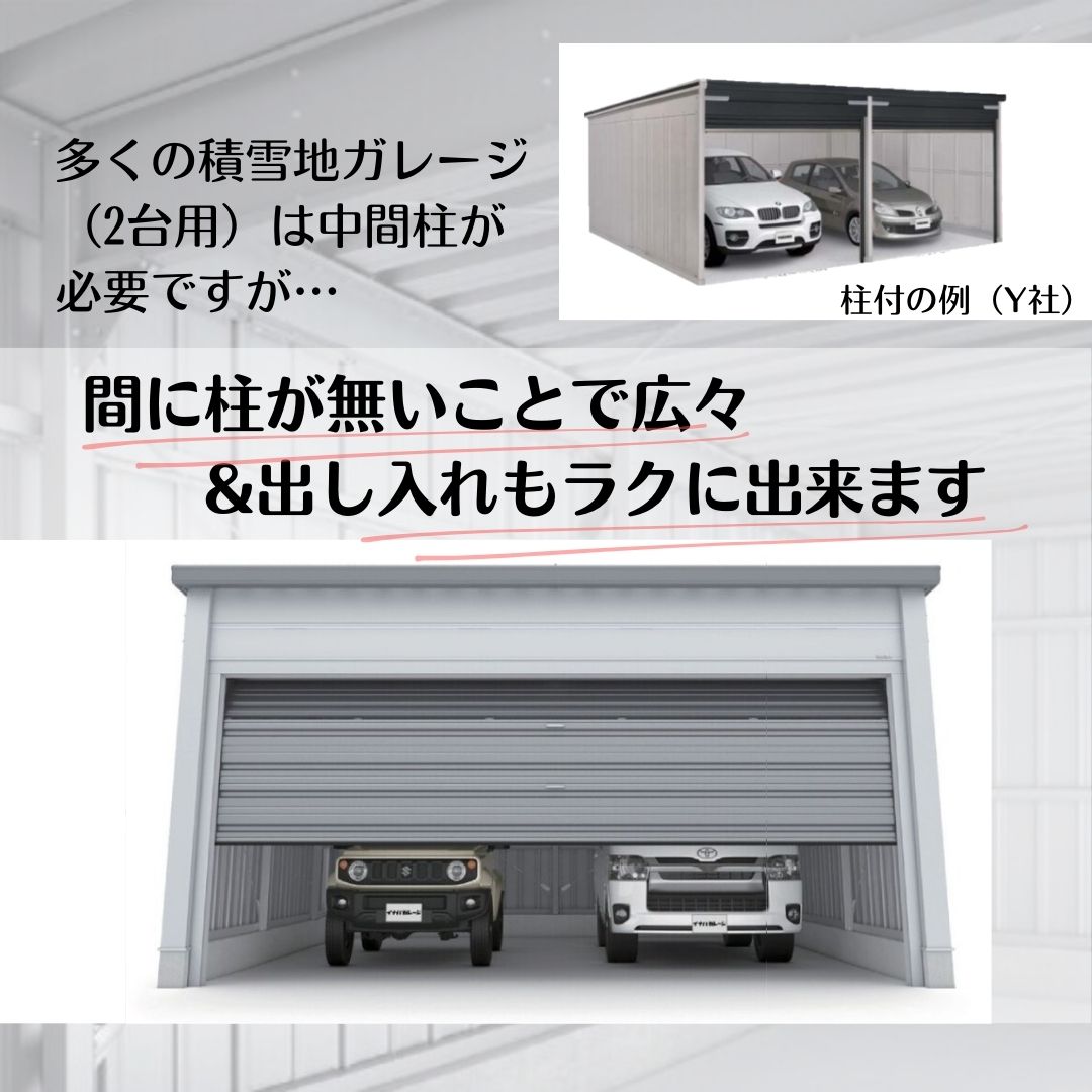 山形県内の積雪の多い地域で活躍する高耐久性のガレージです。