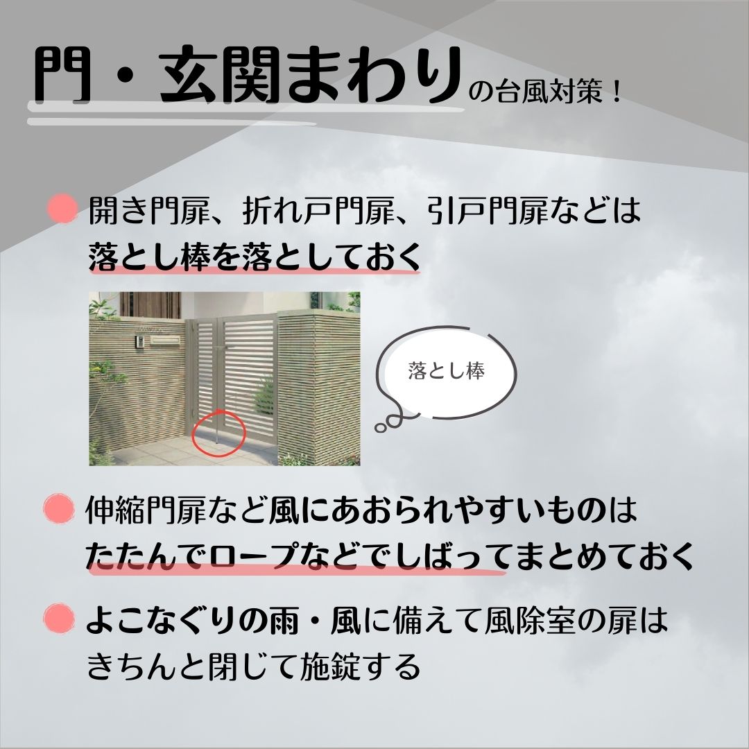 まさに台風10号の北上が連日報道されるさなかですが、今回は庭をふくめお家のまわりでできる台風対策をまとめました。